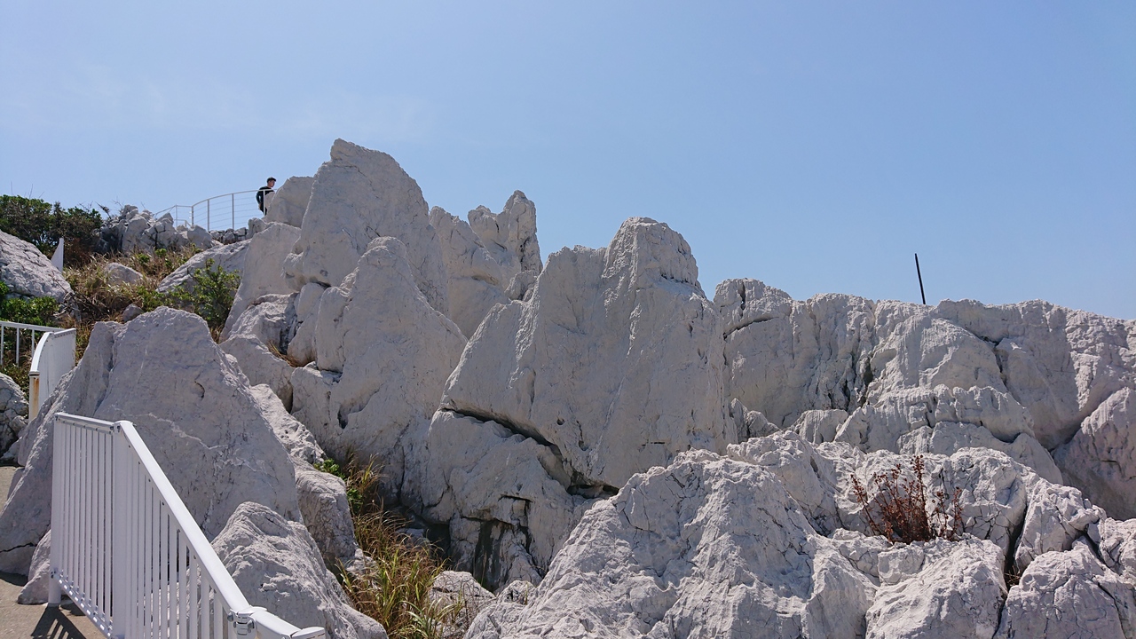 白い岩がたくさんあって