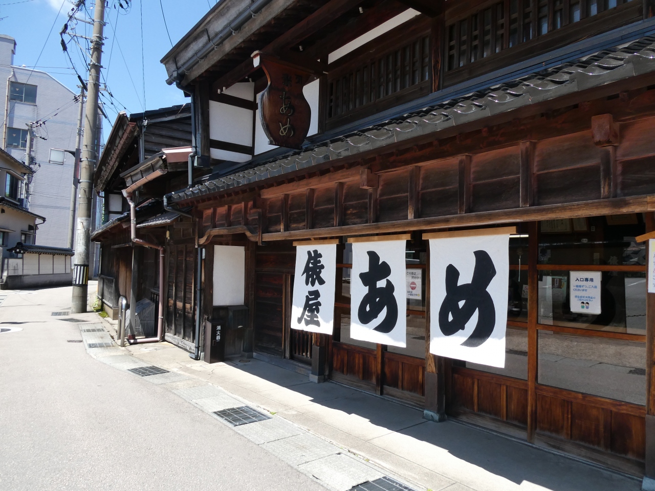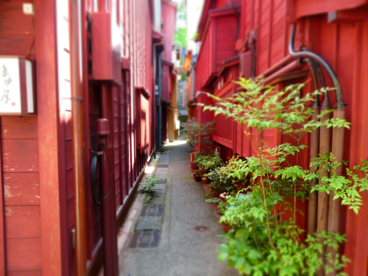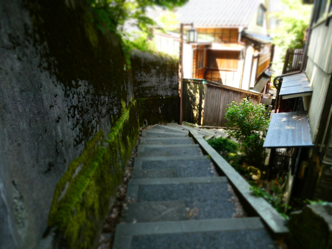とても雰囲気のある街かど、主計町茶屋街。その主計町茶屋街の雰囲気を作っているスポットの一つが、暗がり坂とあかり坂。暗がり坂は、日中でも日が当たらないところからその名が付いたそうですが、私が訪問した時も影になっていて、涼やかな感じでした。