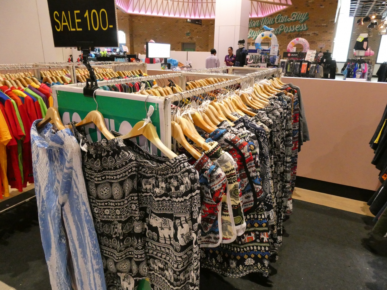 チットロム駅から徒歩8分くらいにあるショッピングモール。ビッグCの隣、と言った方が分かりやすいかもしれません。私が訪問した時はそれほどお客さんも多くなく、のんびりゆったりと館内を巡ることができました。タイパンツも売っていました。