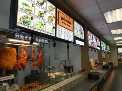 スワンナプーム国際空港内にあるフードコート。空港内の施設にしては料金は安く、バンコク市街にあるフードコートと価格差はほとんどありません。早朝着の便から降機して立ち寄ってみたところ、ほとんどのお店が開いていました。使い勝手が良いと感じました。