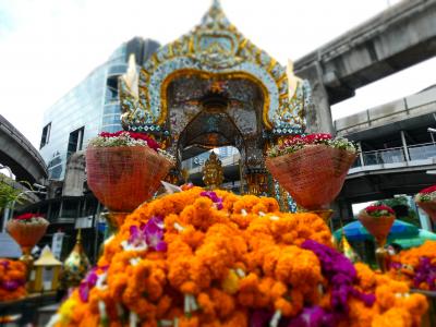 チットロム駅のそば、プロンチット通りとラチャダムリ通りの交差点のすぐ脇にあります。地元でも有名なパワースポットのようで、地元の方が熱心に祈りをささげていました。韓国客はあまり邪魔にならずにそっと遠くから拝観するのが正しそうな気がしました。