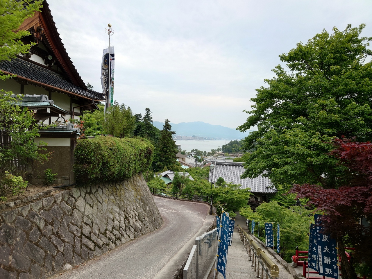 フェリー乗り場から厳島神社までの通り。一般車両の進入を禁止しているこの通りは、お土産物屋さんが軒を連ね、工夫を凝らしているお店もあれば、昔ながらの風情そのままのお店もあり、見ているだけでも何だかウキウキしてきました。