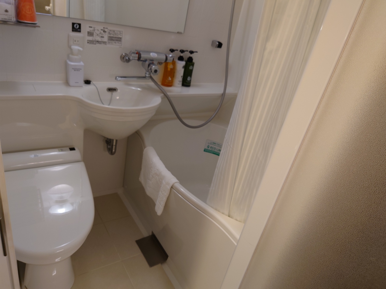 広島駅のそばにはアパホテルが2件あり、橋を渡った方に宿泊しました。施設はとてもきれいで、スタッフの方もとても親切でテキパキしていました。部屋は超狭いです。荷物を広げたり着替えたりするのも、ままなりません。お風呂は大浴場があり、ジャグジー風呂が気持ちいいです。小さいながらもコンビニが併設しているのも便利だと思いました。室内に無料のミネラルウォーターがあったのは、何気に嬉しかったです。狭さに納得できる方にはお勧めです。