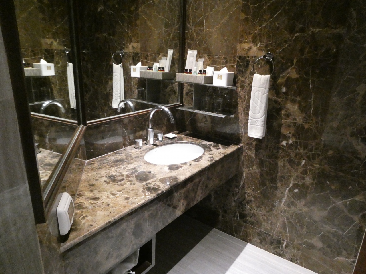 プロンポン駅から徒歩7分くらい、アソーク駅から徒歩10分くらいにあるホテル。19階の部屋でしたが、エレベータでは直接19階に降りることができず、一旦18階で降りたあと、18階から19階に上がる専用のエレベータに乗り換える必要があります。部屋はキレイで、何と言ってもお風呂が最高。湯船も洗い場もあり、スカイヘッドシャワーも備え付けられています。水圧は若干弱めです。トイレはウォッシュレット。無料のミネラルウォーターも毎日2本いただけました。朝食ビュッフェ付きのコースでしたが、朝食もおいしかったです。定宿になりそうです。