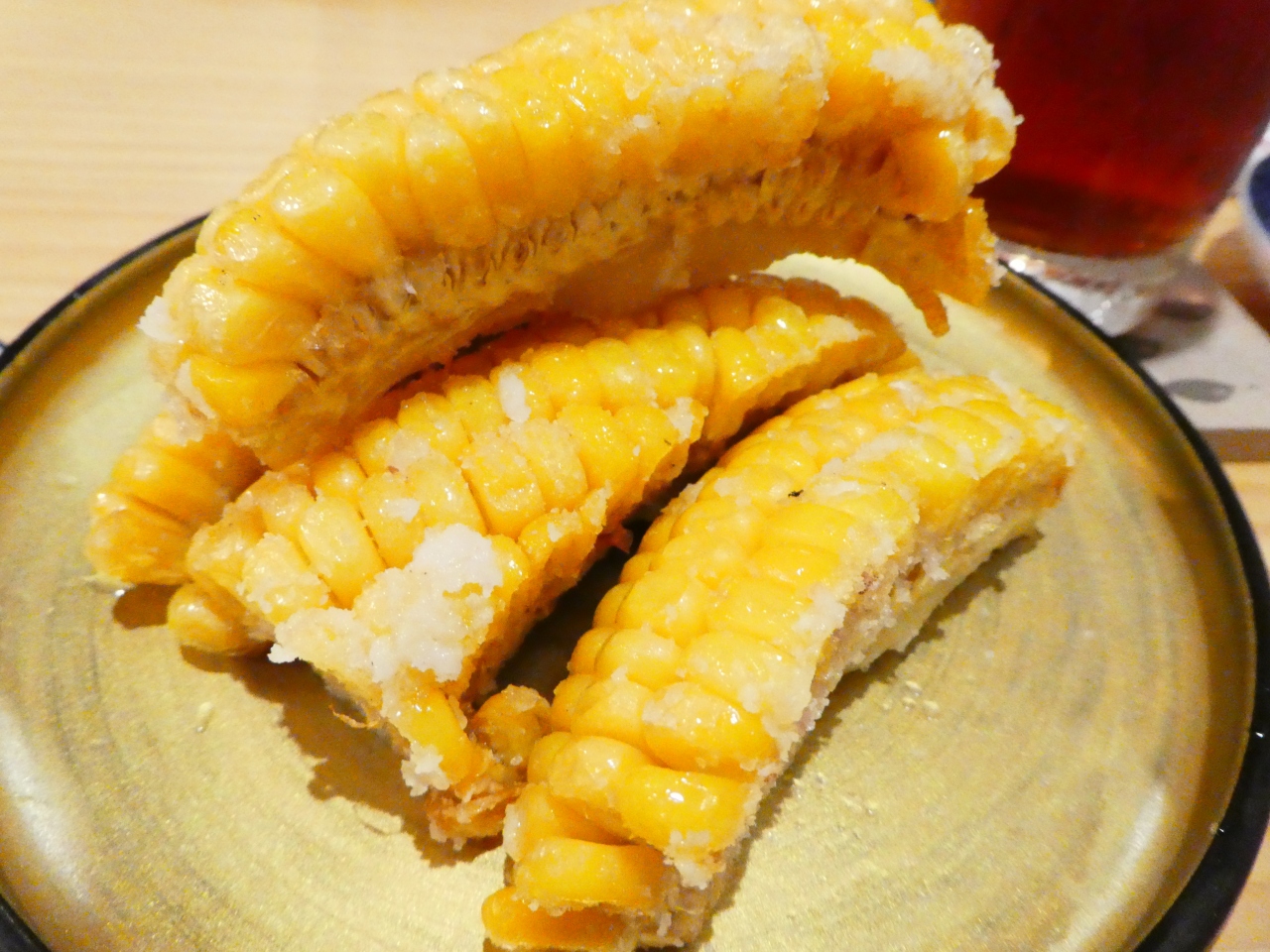 西武新宿線上石神井駅から徒歩4分くらいにあるお店。アメックスのショップスモール参加店で、この時はアメックスで支払すると30%オフになるということで伺いました。開店時刻とほぼ同時に訪れたのですが、30分くらいで満席になりました。食事はどれもとてもおいしかったです。気に入ったのはトウモロコシを揚げたもの。シンプルながら塩味が効いていて、ビールが進みました。