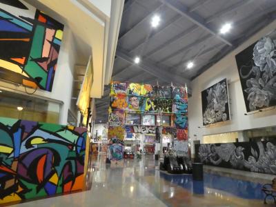 10年位前はまだ活気があったファッションアウトレット。シャトルバスの運休あたりから客足が減り、テナントは逃げ、現在は最盛期の1割くらいのテナント数です。空いたスペースを埋めるために、ストリートアート風の作品を空きテナントの前に設置しているのですが、それが安っぽさをさらに助長しています。なお、経営会社が変わったのか、施設名称が「PRIZM OUTLETS」になっていました。