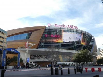 以前は駐車場だったパークMGMの脇に建てられた巨大スタジアム。この時はアイスホッケーのゴールデンナイツの試合をやっていて、アリーナに設置されている巨大液晶ビジョンに試合の様子が映し出されていました。早くも地元に溶け込んでいる様子でした。