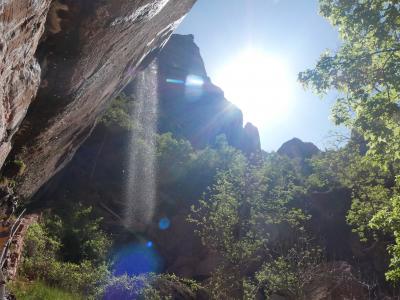 ザイオン国立公園にある見どころの1つ。エメラルドプールと呼ばれる場所は、アッパー、ミドル、ローワーがあり、それぞれ景色が異なります。体力に自信がない方はローワーだけに絞るという手もあると思います。ローワーには小さな滝があり、その裏を歩くことができます。日差しが乱反射して、とてもきれいでした。