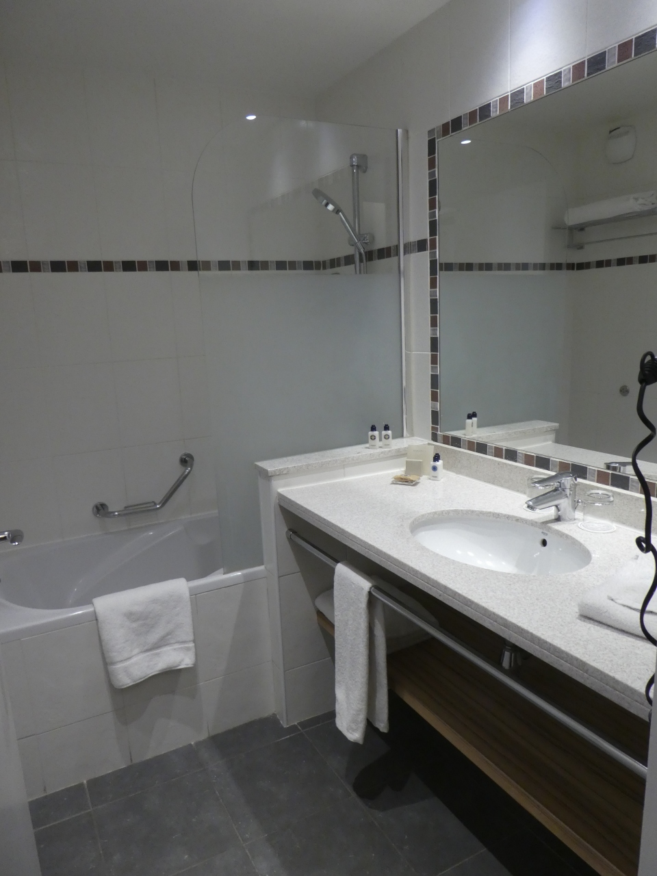 翌日のフライトが早かったため、空港近くのこのホテルを利用しました。ホテル独自でシャルルドゴールまでのシャトルバスを運行しています。バスと言っても大きめのワゴン車という感じで、十数名乗れば満員になるくらいのサイズです。ホテルから空港までは5時から20分間隔で運行しています。部屋は普通。バスタブがあるのがありがたいです。