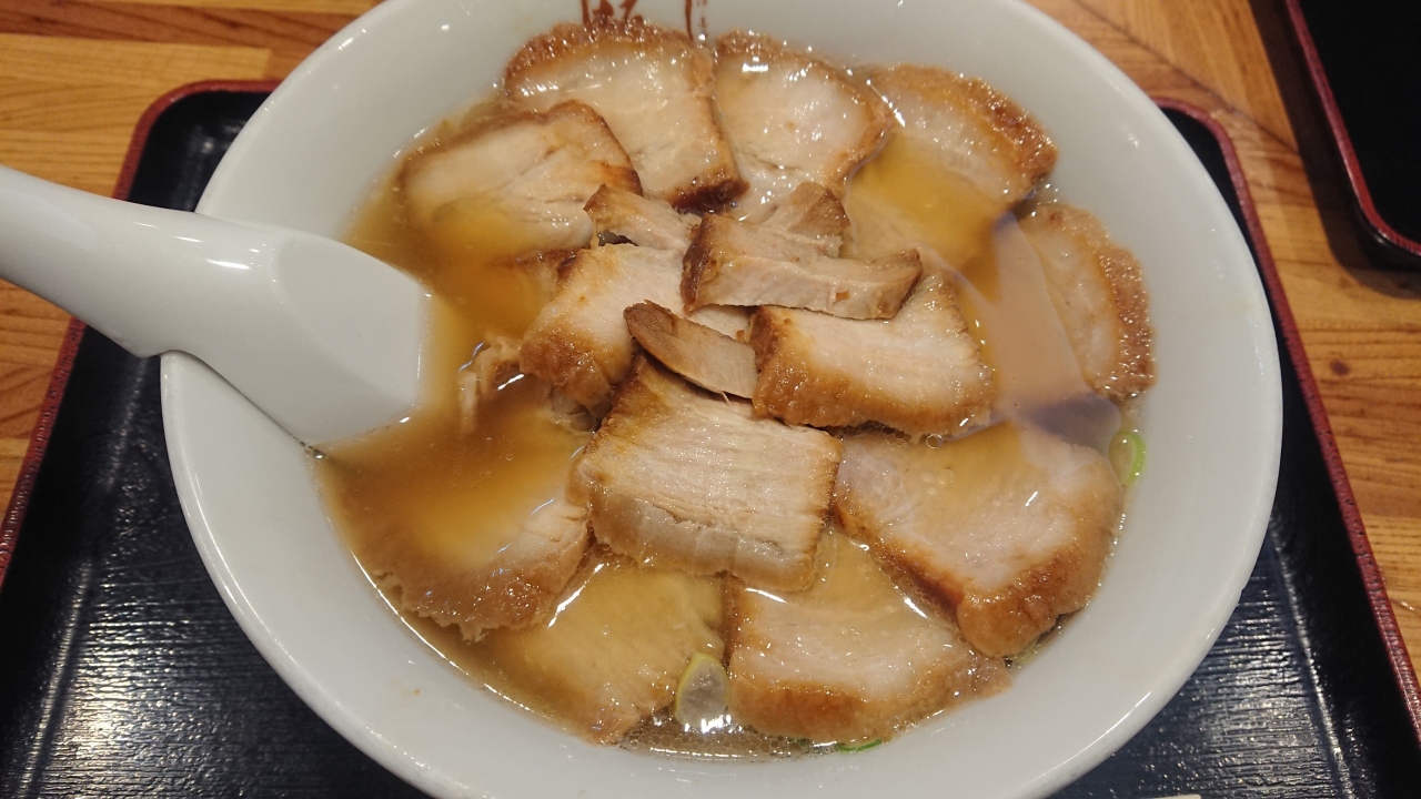 たまたま「焼豚ラーメン祭り」をやっていることを知って、久しぶりに訪問してみました。焼豚ラーメンが、通常940円のところ790円で提供されていました。焼豚が丼全面に覆われた姿は、花が咲いているようで、見ているだけで美しいです。焼豚はしっかり味が入り込んでいて、柔らかく、さすが看板メニューだと思いました。