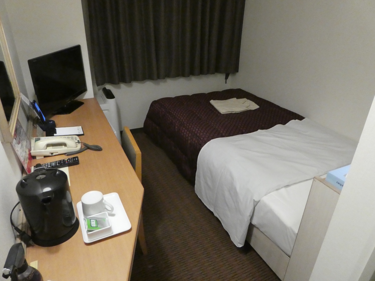 博多駅から徒歩2分くらいのビジネスホテル。建物は少々古めです。部屋はシングルを利用しましたが、かなりの狭さでスーツケースを広げるのも苦労します。アメニティやパジャマなどは一通り揃っていました。立地で勝負のホテルだと思います。