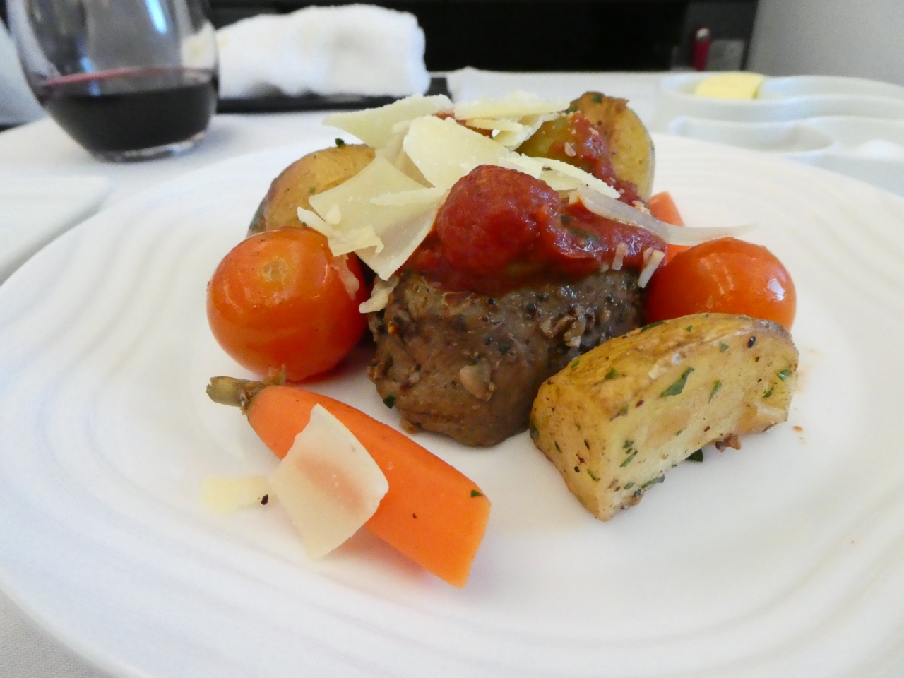 特典航空券でビジネスクラスを利用しました。787のスタッガードシートで、フルフラットはやはりとても快適でした。機内食はステーキを選択。少し固かったのは残念ですが、機内ではあまり多くは望めませんよね。お酒も軽食も美味しく、またモニタも大きくて快適でした。シートの配列上仕方がないですが、連れと並んだシートを選択しても、シート間に仕切りがあるので、会話がしにくいです。また、窓側は必ず1列なのですが、窓側2列のシートがあると嬉しいと思いました。