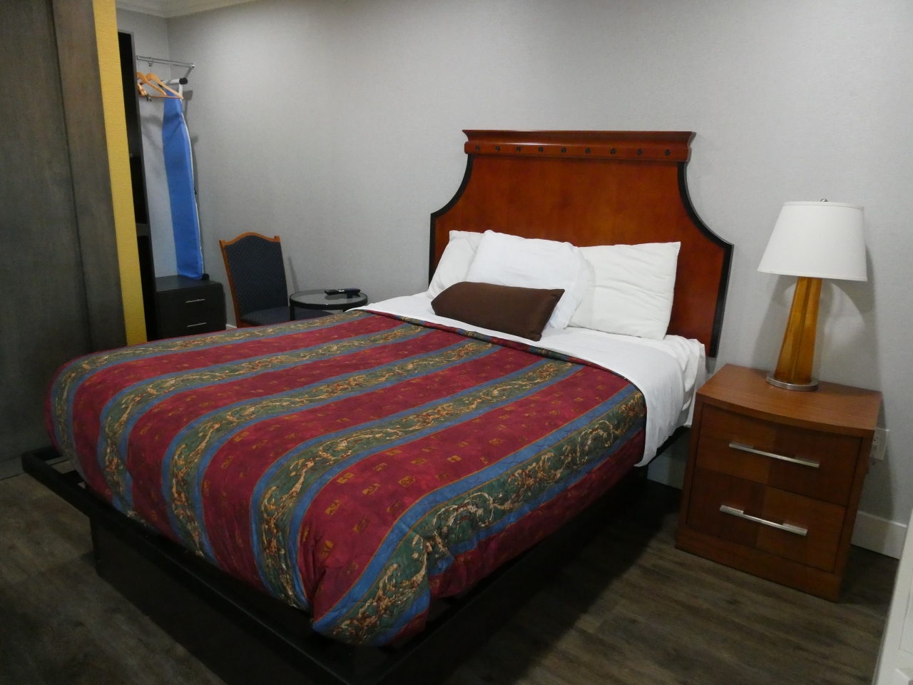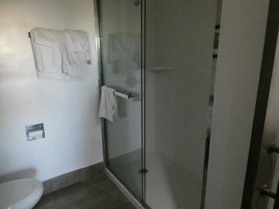 サンフランシスコ空港から徒歩で移動できるところを探して、ここを利用しました。空港トラムのLong-Term Parking駅から歩いたのですが、路面がデコボコでスーツケースを運ぶのに難儀し、結局徒歩で1時間くらいかかりました。ホテルの外装は年季を感じさせましたが、室内はリノベーションしているようでとてもきれいでした。シャワーは、カーテンでなくガラスの仕切りとなっていました。水回りも清潔感ありました。
