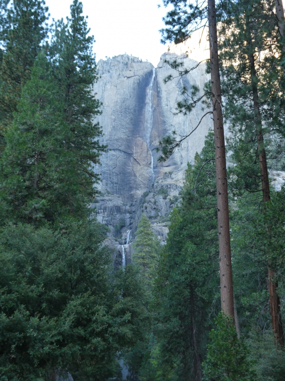 ヨセミテフォールトレイルは、滝のふもとまではとても簡単にアクセスできます。トレイルコースは舗装されているので、装備も不要です。そしてちょっと歩けば、目の前にはとても高いところから流れ落ちるヨセミテ滝を見上げることができました。迫力のある高さで、感動しました。