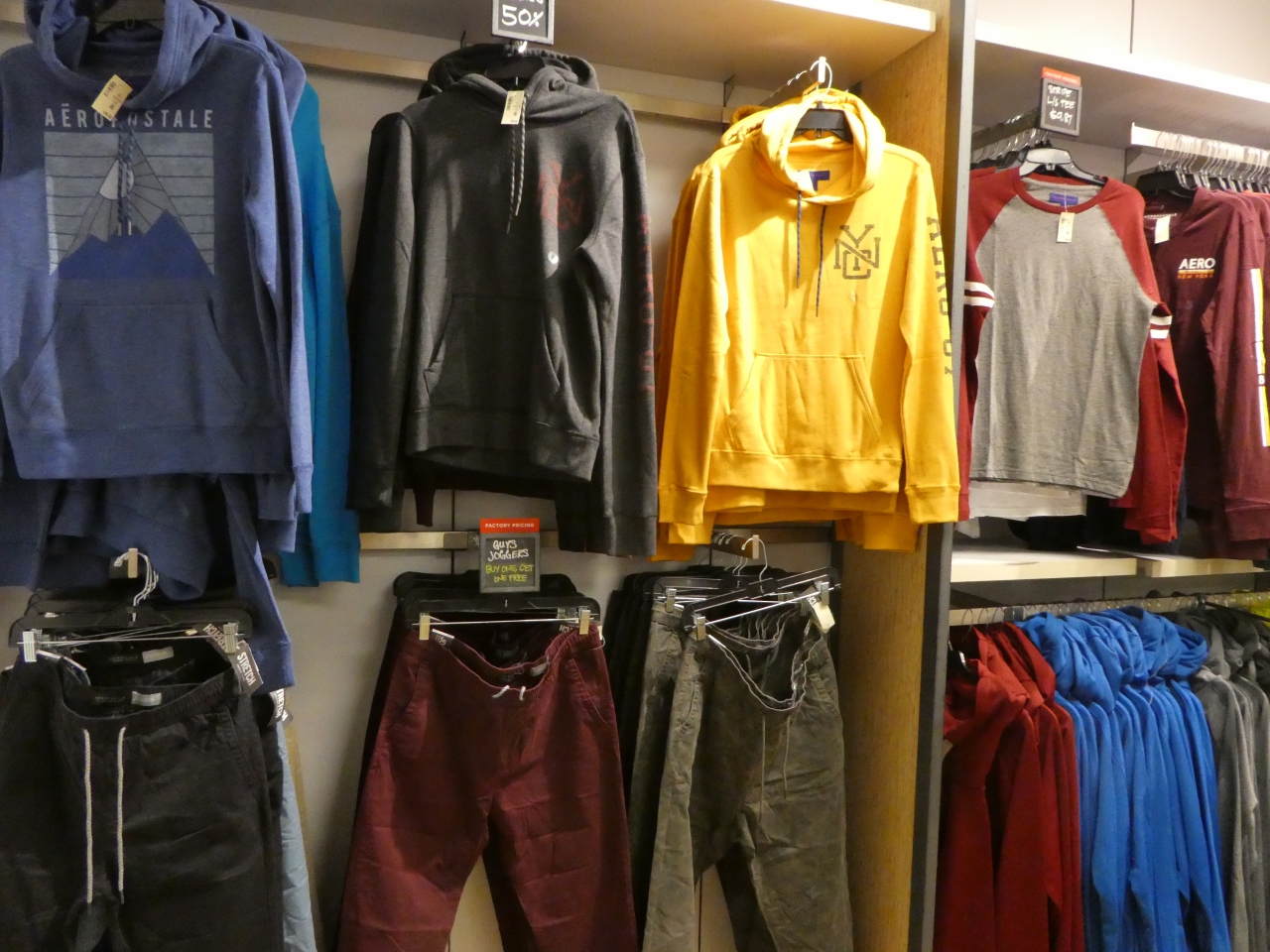 エアロポステールは、以前はサンセットのギャラリアにもありましたが、そちらの店舗が閉鎖してしまったようで、今後はこちらの店を重宝しそうです。アバクロやアメリカンイーグルよりもラインとしては少し安い印象です。アウトレットなだけあって、常に何かしら割引されています。