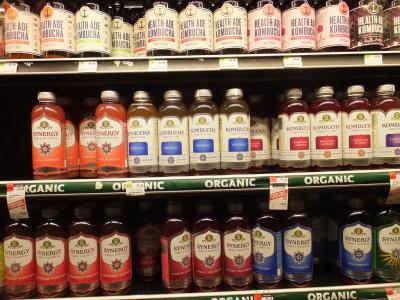 アメリカで人気の高級路線のスーパーマーケット。化粧品やエコバックなんかも売っていて、お土産を求める日本人女性にも人気があるようで、店内でよく見かけます。アメリカで今流行っているものを見るのも楽しみの1つなのですが、今回見つけたのは大量に陳列されている「KOBUCHA」。日本でも見かけたことないのですが、誰が流行らせたのでしょうか?