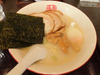 吉祥寺駅南口から徒歩3分くらい。ここのお勧めは鯛塩ラーメン850円とのことで、その看板メニューをいただきました。魚介ラーメンと言うと、強火で出汁を煮出したような印象がありましたが、実際に食べるとコクはありますが上品な感じで旨みの強いスープでした。麺がツルツルの中太麺でしたが、もう少しスープを吸収しやすい麺の方が合うのではないかと思いました。とは言え、デートでのランチでも使えそうなラーメンでした。美味しかったです。