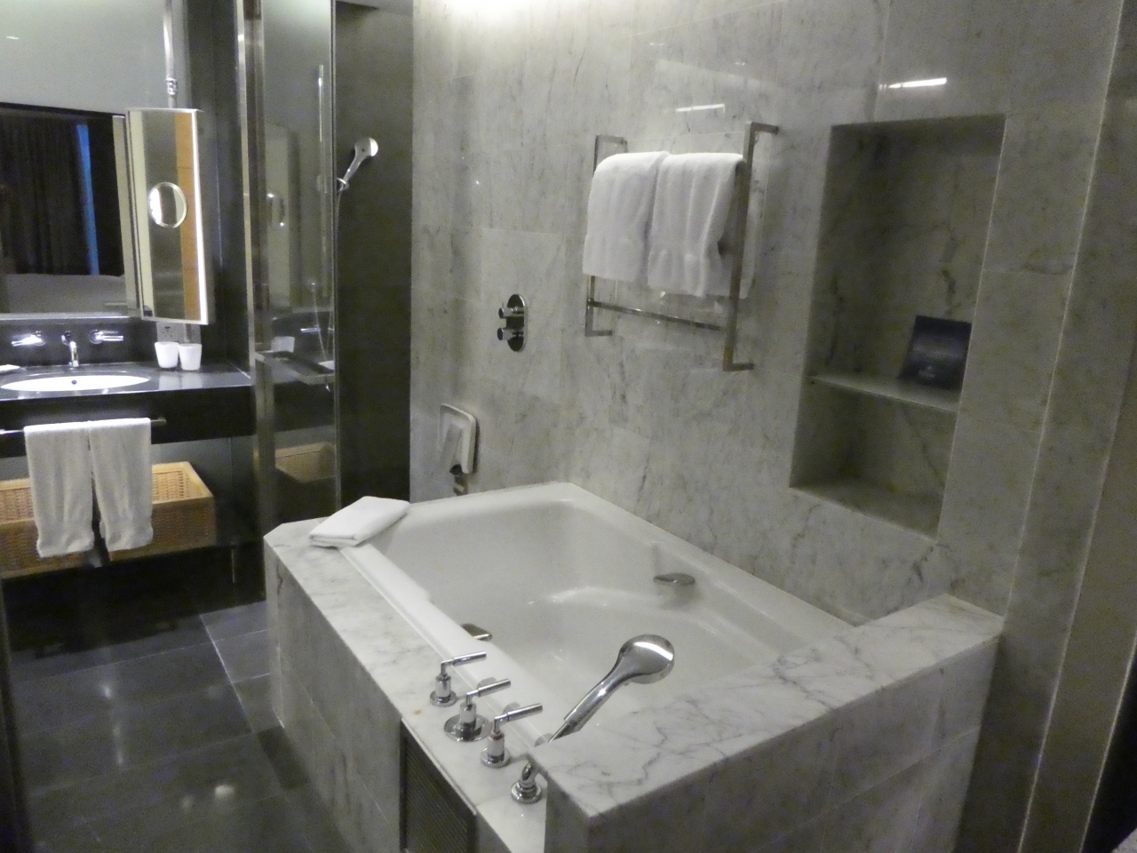 KLセントラル駅と直結しているホテル。部屋は広く、バスタブも広いです。バスタブとシャワーブースはつながっていて機能的。アメニティは一通り揃っていましたが、なぜかドライヤーはありませんでした。USBポートもいくつかあるので、スマホ等の充電には困らないと思います。