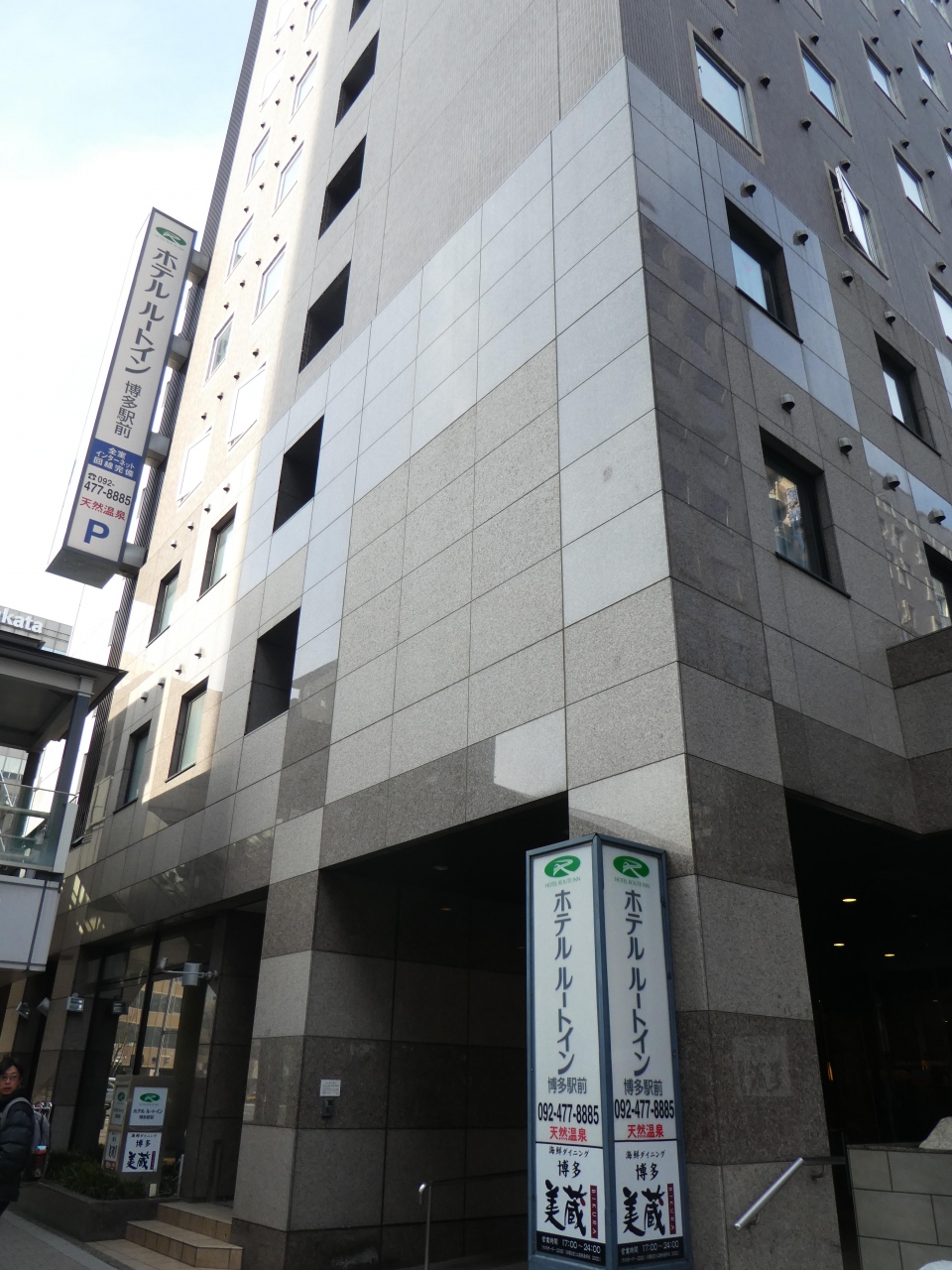 博多駅から徒歩4分くらいにあるビジネスホテル。陸橋を渡る必要がありますが、駅から近くて便利だと思います。隣はコンビニ、地下に居酒屋と温泉があり、便利です。この時は1泊2人利用で8800円と安かったです。部屋は正直狭いですが、寝るところと割り切れば特に問題ありません。温泉はのんびりできて快適でした。