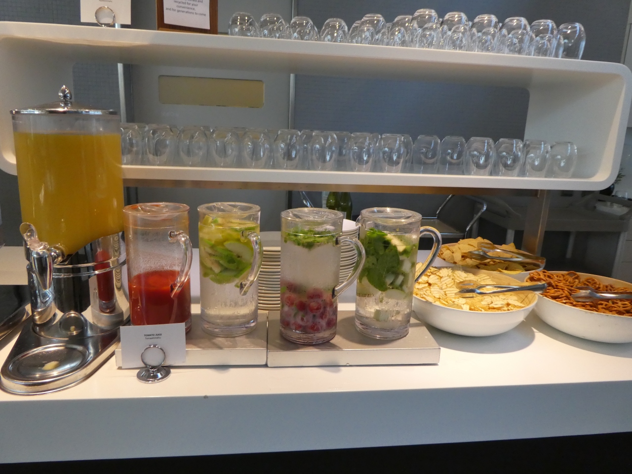 フランクフルト空港でトランジットした際に利用しました。Z52搭乗口から一番近いこのラウンジはとても広く、どの席を確保するか迷うほどです。アルコールもフードも充実していて、ちょっとしたデザートも置いてありました。シャワーもあるようですので、長距離フライトの前には重宝すると思います。