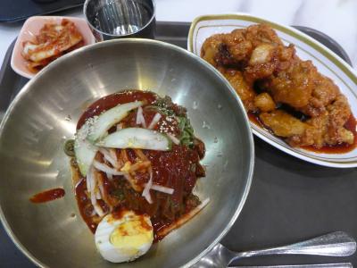 金浦空港内にあるフードコート。店内は広く、ゆったりとしています。コンセントが近くにある座席もありました。対面または端末でオーダーすると、店舗側にオーダーが通され、渡されたチケットに書かれた番号の表示を待つシステムです。この時はビビンパを注文。かなり辛かったです。