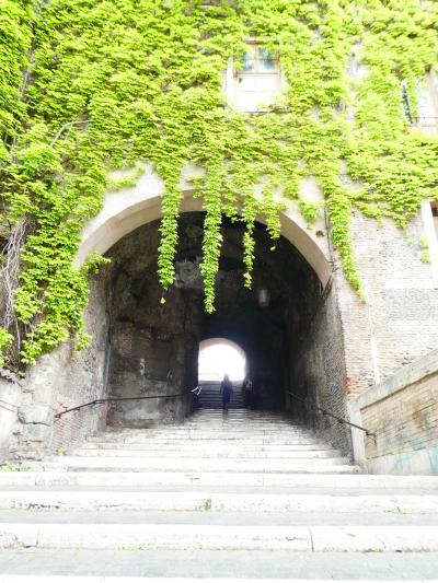ローマの地元の方にお勧めされて行きました。この教会に上る階段の途中に設置されたトンネルが、緑のしだに覆われて、とてもいい雰囲気です。トンネルの暗さと新緑の明るさのコントラストがきれいだと思いました。そんなにメジャーな場所ではないらしく、撮影している人はあまりいませんでした。