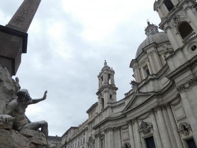 南北に長い広場で、中央にはオベリスクが設置されています。オベリスクの周りにはベルニーニが製作した「四大河の噴水」が設置されています。ボッロミーニが設計したサンタニェーゼ・イン・アゴーネ教会側にある像は教会側に手をかざしており、これは教会が倒れてくるのを防いでいる、という2人の仲の悪さを象徴した情景でもあるようです。大道芸をしている人、絵を描いている人などもいて、時間つぶしをするにもちょうどよいと思います。