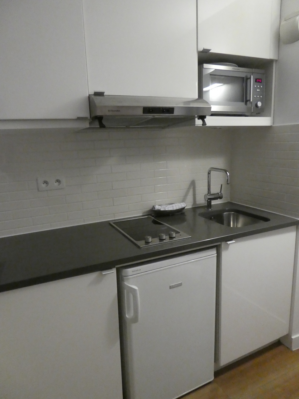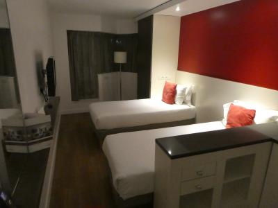 モンパルナス駅から徒歩5分くらいのホテル。部屋は狭いと言うより細長く、使い勝手はあまりよくないかもしれません。キッチンや冷蔵庫、食器や電子レンジが付いていて、料理はしなかったものの、一通りの料理はできそうでした。狭いながらも浴槽があったのは快適でした。フロントロビーでは無料でコーヒーが飲めました。ちょっとしたことですが、嬉しかったです。