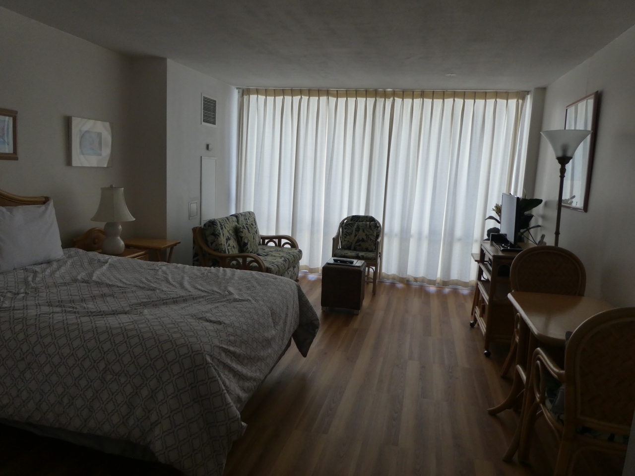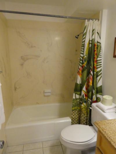 建物は古めですが、部屋はリノベーションされているようできれいです。窓は大きくて、昼間は室内はとても明るいです。コンドで、キッチン用品や冷蔵庫、電子レンジなどは一通り揃っています。浴槽は浅く、お湯をためることはできませんでした。ホテル近くにワイキキトロリーのピンクラインの停留所があるのは便利でした。
