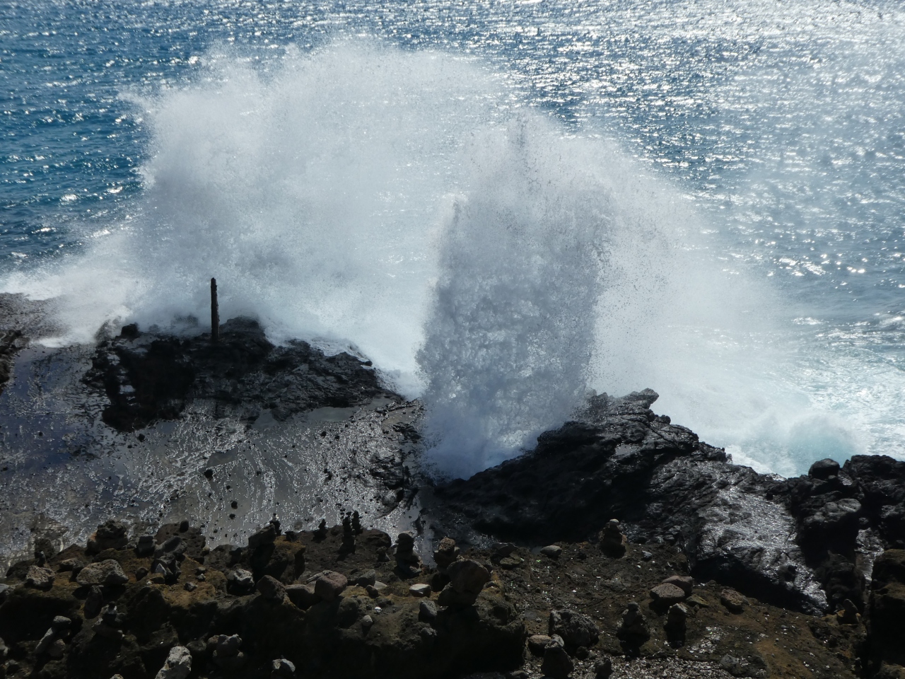 ハワイ州道72号線沿いにあります。駐車スペースが完備されていて、車で簡単に行くことができます。ここは、岩の形状が入り組んでいて、岩に波が打ちつけられると、岩の隙間から潮が吹き上がります。潮が吹き上がるたび、観光客から「おーっ」と歓声があがったりします。他ではなかなか見ることのできない景観だと思います。