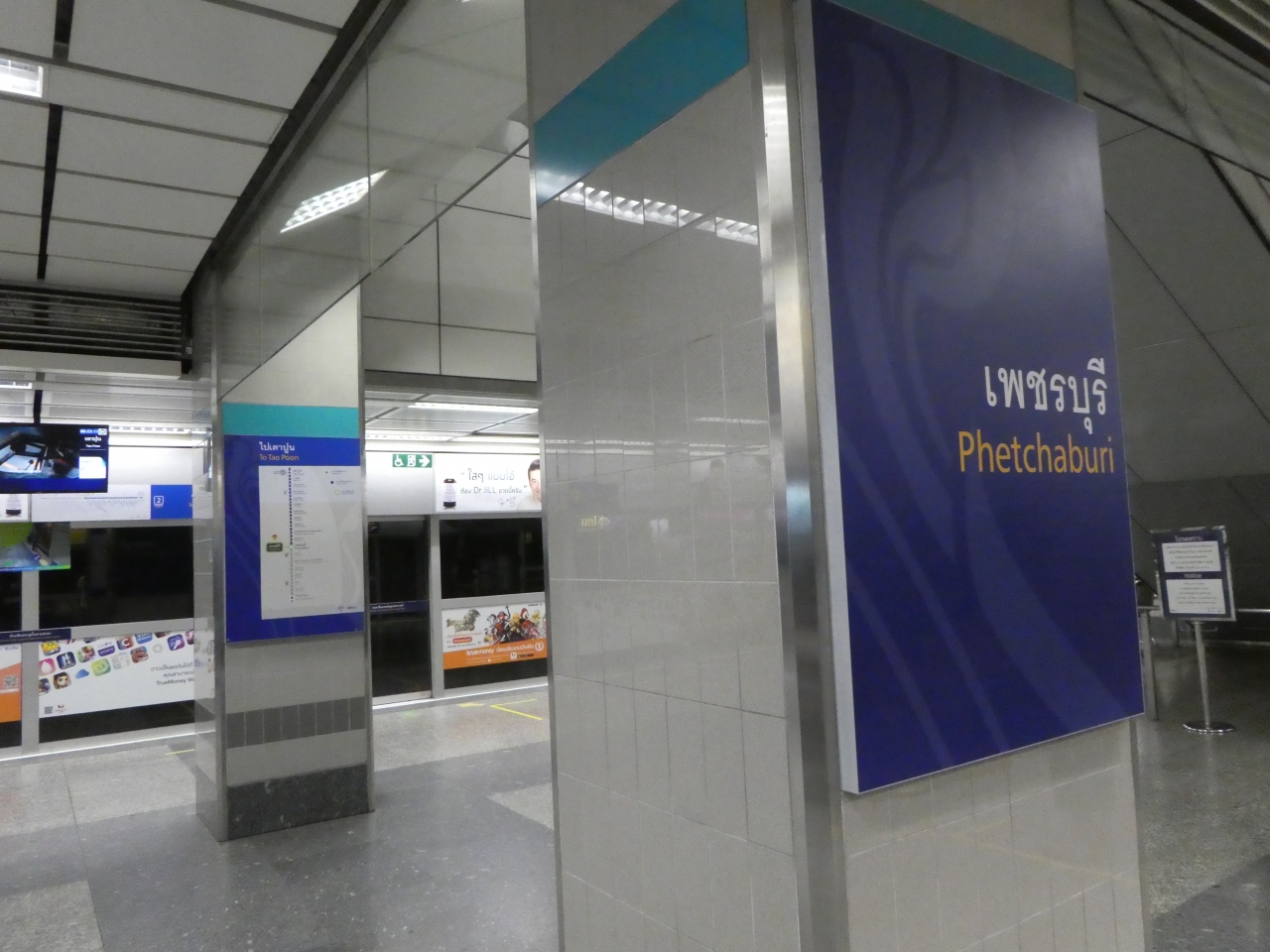 BTSスクムビット線とBTSシーロム線が乗り入れている駅。そのせいか、いつも混雑している印象です。今回は、チットロム駅からナショナルスタジアム駅に向かうときに利用しました。スクムビット線からシーロム線に乗り換える時は、ホームを挟んで目の前の列車に乗ればよいので便利でした。