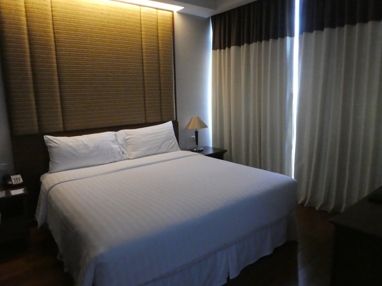 アソーク駅から徒歩8分くらいにあるホテル。部屋はとにかく広く、リビングとベッドルームが分かれていました。バスルームはトイレと一体になっていましたが、浴槽がとても広く、またブラインドを開けるとバンコクの町並みを見ることができます。キッチンや電子レンジ、冷蔵庫、洗濯機、乾燥機も備え付けられていました。ミネラルウォーターも1日2本が無料でサーブされてました。プールは2箇所ありますが、正直使い方が分からなくて泳ぐのは断念しました。スポーツジムがあり、有酸素マシンのほか、ボルダリングやバスケットゴールなどもありました。隣には24時間オープンのスーパーマーケットもあります。アソーク駅から少し離れている点を除けば、ほぼ完璧のホテルでした。JALマイルが貯まるようですのでJALカードをお持ちの方は持っていくことをお勧めします。