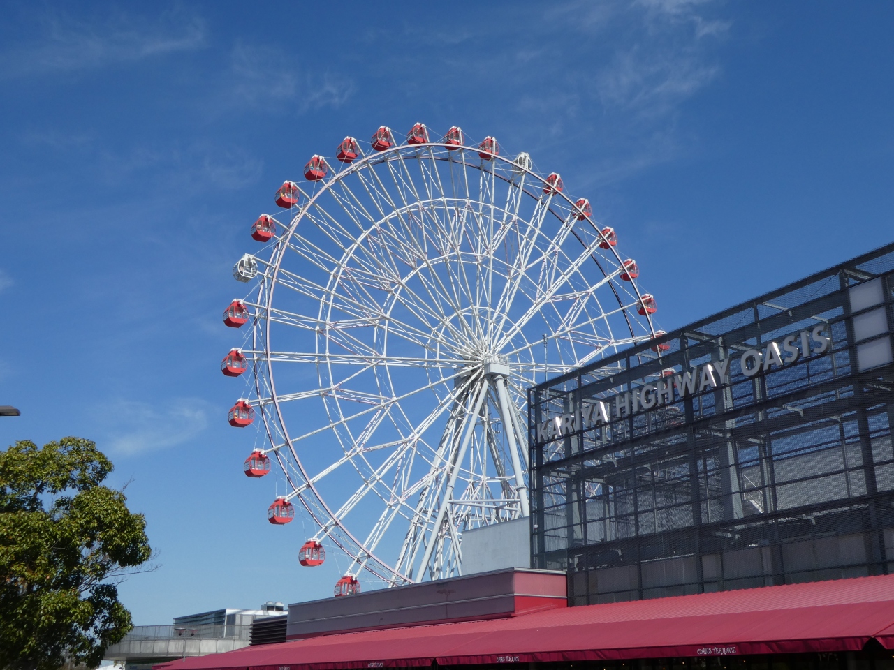 観覧車がシンボルとなっているハイウェイオアシス。駐車場がとても広く、複数の車で訪問すると合流するのが大変かもしれません。この日はフードコートで味噌串カツを購入。八兆味噌にたっぷりと漬け込まれたカツはジューシーでほんのり甘く、とても美味しかったです。