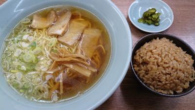 新宿三丁目にあるラーメン屋さん。店内には有名人のサイン色紙がたくさん貼ってあります。この時はラーメンとチャーシューおこわを注文しました。ラーメンは鶏ガラスープで、旨みがきちんと出ているいい味でした。チャーシューおこわは、そのまま食べてもいいですし、卓上の味辛しを足したり、ラーメンスープをかけてお茶漬け風にしたりして食べてもおいしいです。