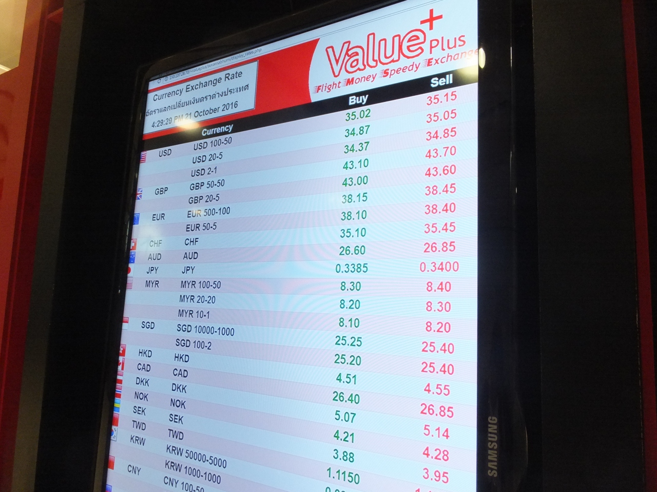 スワンナプーム国際空港内の両替所、というよりも、スワンナプーム国際空港駅にある両替所と言った方が正しいかもしれません。エアポートスカイリンクの乗り場付近にあります。今回のバンコク旅行で比較した中では、ここが一番レートがよかったです。日本円のレートがよいと言われているタニヤ・スピリットよりも、こちらの方が良かったです。空港で換金すると損かも?と思っている方はいらっしゃると思いますが、ここは例外かもしれません。