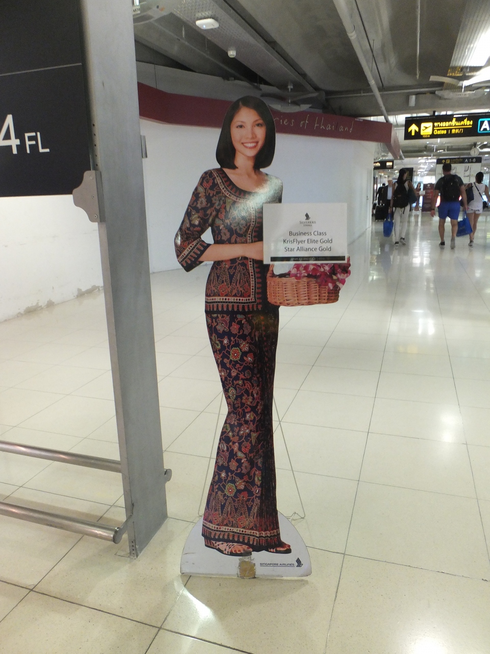 スワンナプーム国際空港はもちろんタイ国際空港の拠点となっており、ロイヤルシルクラウンジで占めていますが、その中にあってシンガポール航空のシルバークリスは大健闘していると思います。シャワーがないのが残念ですが、ライバルのロイヤルシルクに比べて食事はおいしいですし、比較的空いていると思います。ラウンジまでの案内で、CAさんの看板が置かれているのですが、遠めに見ると本当に人間に見えて、少し不気味です(^^;;;