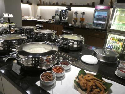 バンコクから日本への早朝便に搭乗するときに利用しました。シャワーブースに置いてあるアメニティはターンなのが嬉しいです。昼間や夜は割と混んでいるイメージですが、この日は朝5時台に利用したせいか、とても空いていました。そんな時間帯でも、食事はちゃんと揃っていました。