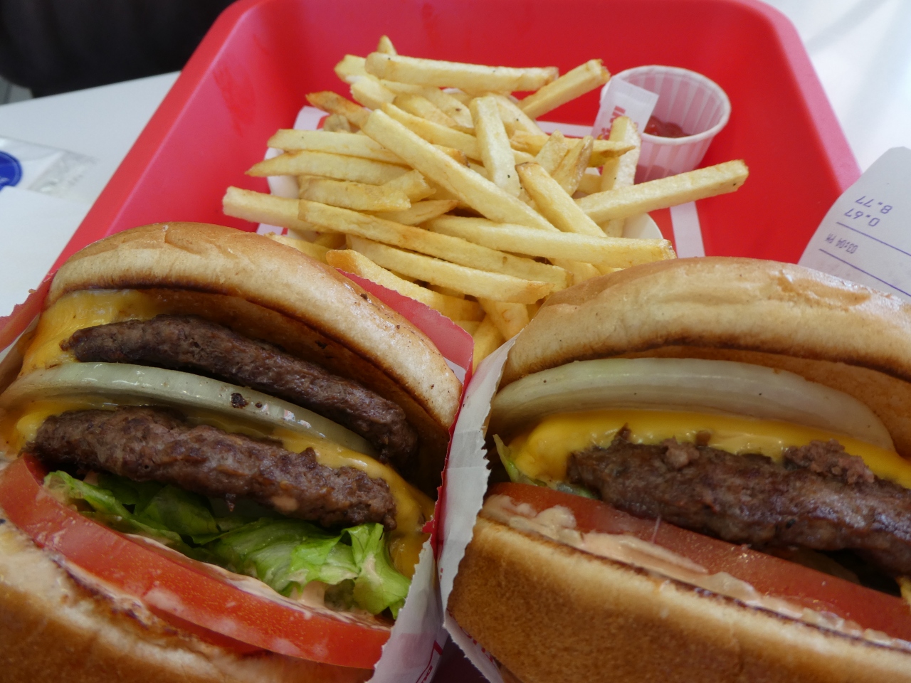 アメリカで人気のバーガーショップ。いつも混んでます。ラスベガスにはインアウトはいくつかありますが、ストリップにできるまではここが多分一番混んでいたと思います。最近知ったのですが、同じメニューでも店によって値段が異なるようです。ここではダブルダブルが3.75ドルでしたが、サハラ店では3.5ドルでした。とは言え、安くておいしくて、全く不満はありません。