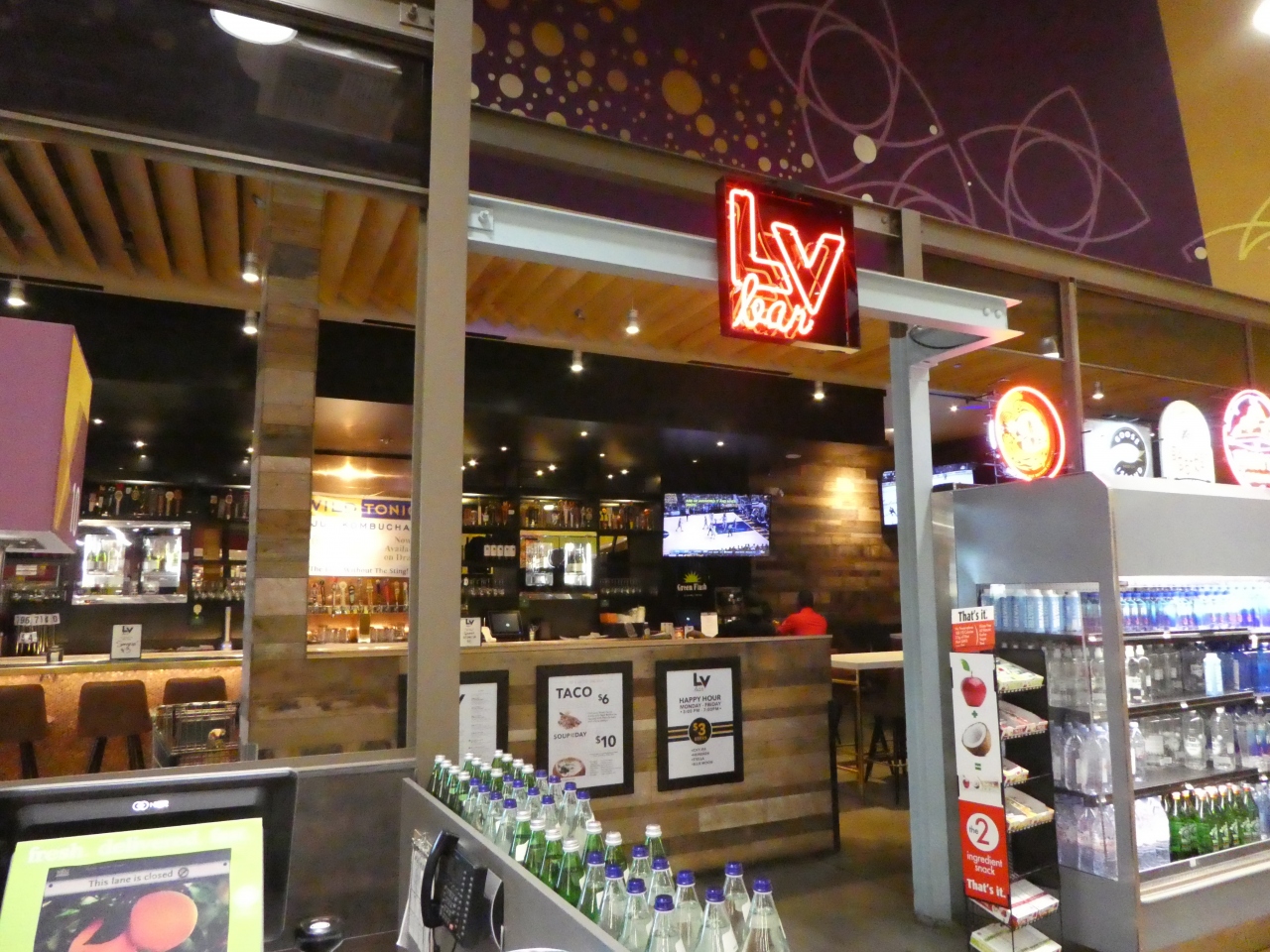 もともとデリが充実していたりイートインスペースがあったりして、店内で食事できる雰囲気でしたが、店内の一部を改装してバーがオープンしていました。カウンターがあり、蒸留酒のビンがずらっと並んでいて、スーパーの一角あるとは思えない雰囲気でした。