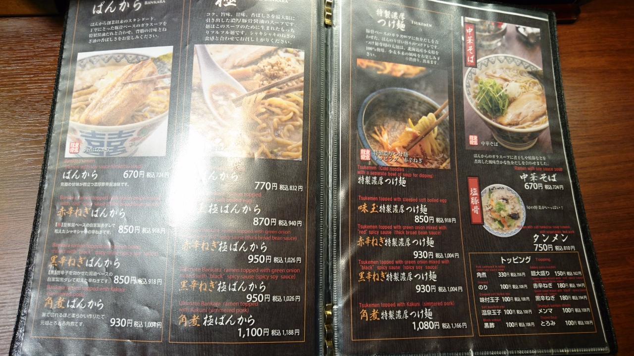 歌舞伎町にある、東京豚骨ラーメンを標榜するお店。看板メニューらしい角煮ばんからを注文しました。角煮は大きいです。10センチ以上はあるでしょうか。でも、筋っぽくて固いです。とろける食感を期待していたのに。初めて、角煮を噛み切るという作業をしました。麺は輪ゴムのような食感です。スープは、味噌ちゃんこ鍋の残り汁で〆のラーメンを作ったときの味に似ていました。これで1004円。ラーメン屋で1円玉を払ったのは初めてでした。今日感じたがっかり感を忘れてしまったら、また行ってしまうかもしれません。