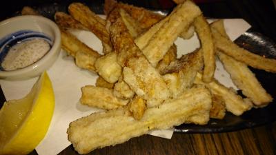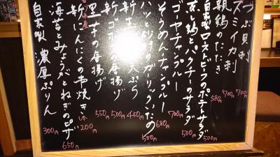 西武新宿線上石神井駅から徒歩2分。飲み屋が並ぶ路地にあります。ここは焼き鳥がウリで、種類が多く、1本1本炭火で丁寧に焼かれています。焼き鳥のほか、お通しで出てきたサラダがシャキシャキでおいしかったです。また、ミョウガとネギのピザも生地が薄いタイプのピザで、カリカリしていておいしかったです。