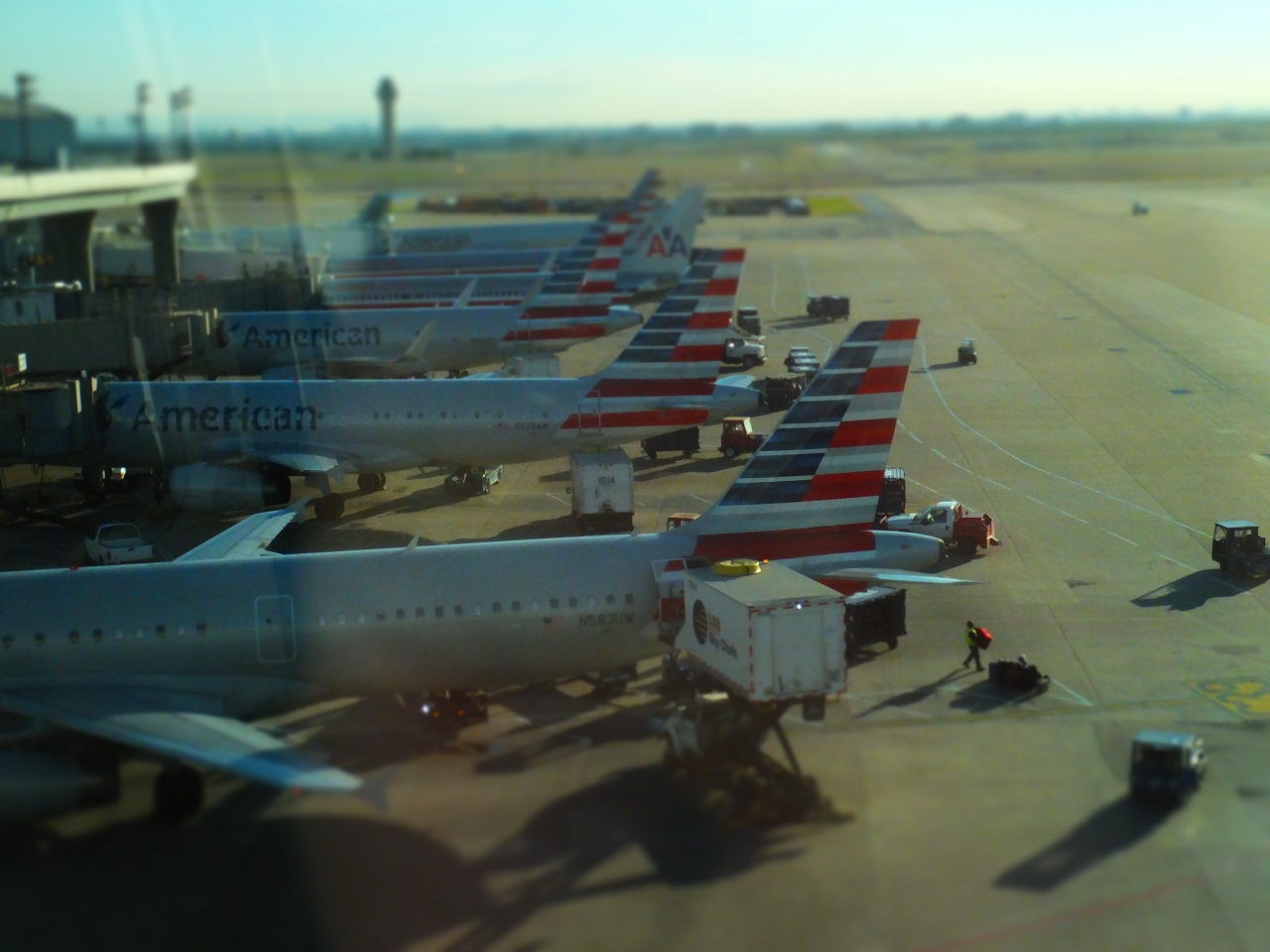 アメリカン航空のハブ空港となっており、アメリカン航空や日本航空の機体が多く利用しています。敷地は広く、ターミナル間はスカイリンクという無料の交通機関で結ばれています。テキサス州にあるためか、お土産物屋さんはバッファローとかを髣髴とさせるものがいくつかありました。