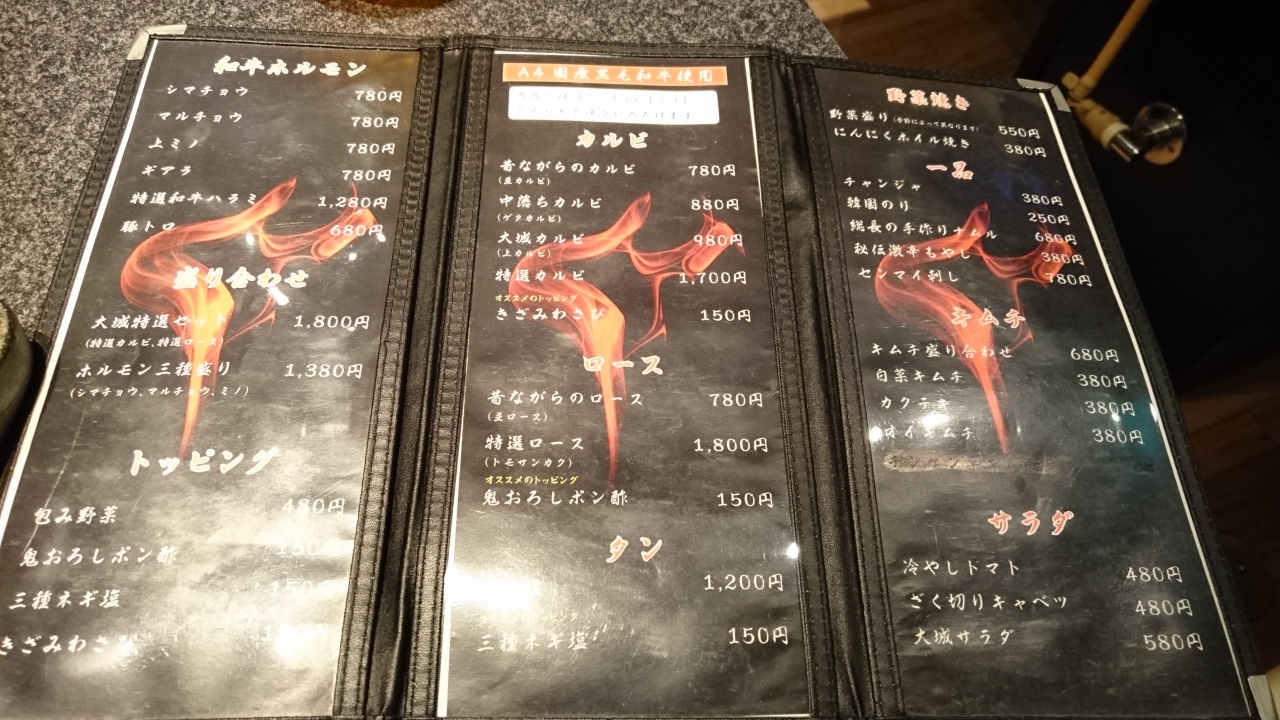 飯田橋で焼肉店を探して、見つけたのがこの店。当日の予約でしたが無事予約が取れました。お店は飯田橋から少し歩きます。メニューに載っていないお勧めのメニューは、壁の黒板に書かれています。焼肉は普通においしかったです。ただ、たまたまかもしれませんが、店がずっと空いていたのが気になりました。混雑してやかましいよりもずっといいですが、、。