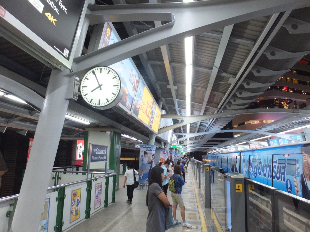 空港からホテルへの移動に使いました。空港から市街地まではエアポートレールリンクを使い、パヤタイ駅から乗り換えました。BTSの駅ホームは全て階上にあり、電車に乗るためにはエスカレーターや階段を使う必要があります。上りのエスカレーターはあるのですが、下りはないので、重いスーツケースを持っていると一苦労です。券売機は、お札が使えないタイプのものが多いようです。また、コイン式の券売機は、一度に1枚しか切符を変えません。お札しか持っていない場合、窓口で買う必要があります。券売機や窓口が少なく、またコインを持っていないのにコイン式券売機に並んでしまうお客さんも多く、私が利用したときはかなりの列ができていました。