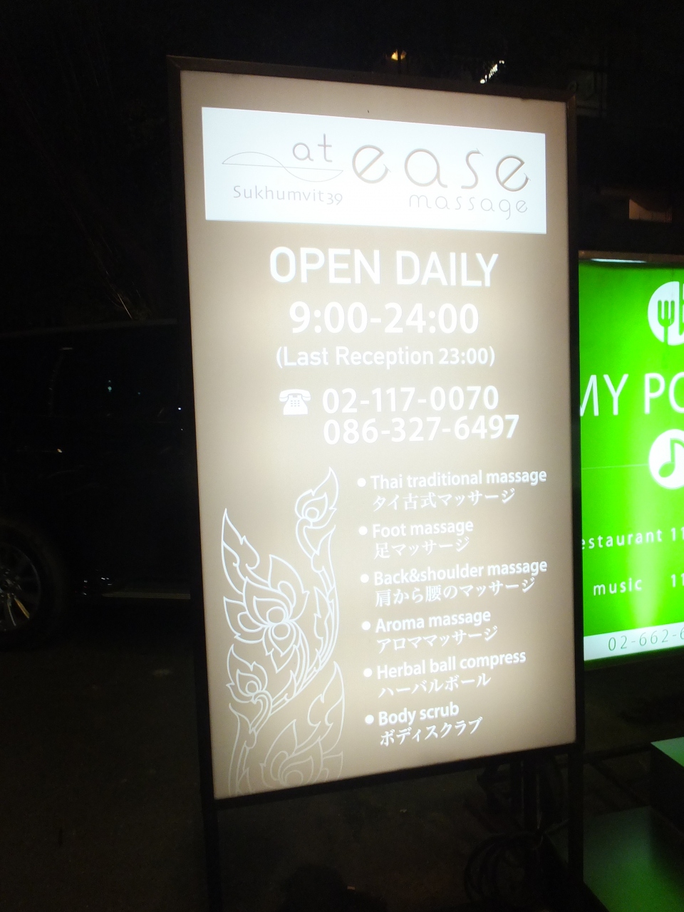 タイ古式マッサージを受けたくて、タイに駐在している日本人の友人に聞いたところ、彼女が常連で通うこの店を教えてもらいました。施術の前にお茶をいただき、足を丁寧に洗ってもらいました。着替えて施術室へ。個室ではなく、カーテンで仕切られていました。かすかに音楽がかかっていて、自分で選んだ香りに包まれながらのマッサージでした。とても丁寧で、タイ古式マッサージにも関わらず、つい寝てしまいました。施術後はまたお茶を出していただきました。値段も安く、また行きたいです。