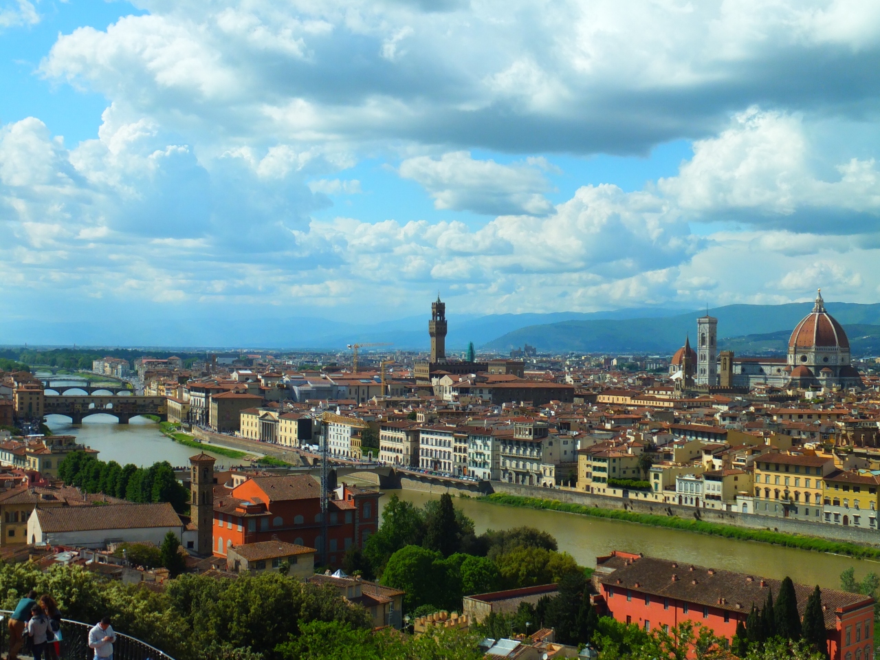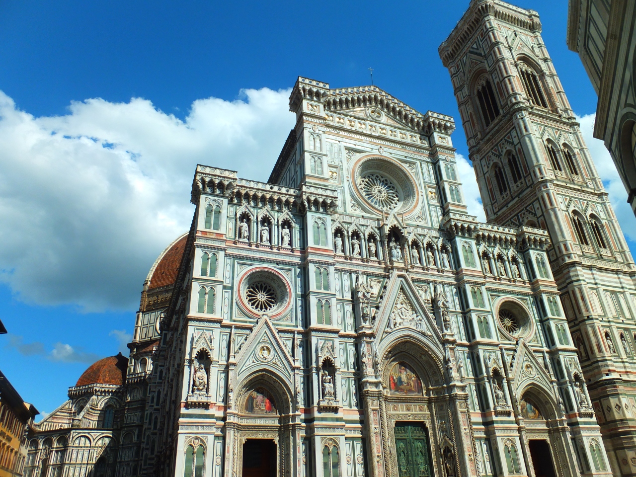 フィレンツェのシンボル。外観はよく見ると思いますが、できれば建物にも入ってみてください。入館料は不要です。観光客が多いので、あまりゆっくりと見学できないかもしれませんが、厳かな雰囲気やきれいなステンドグラスに心を打たれると思います。
