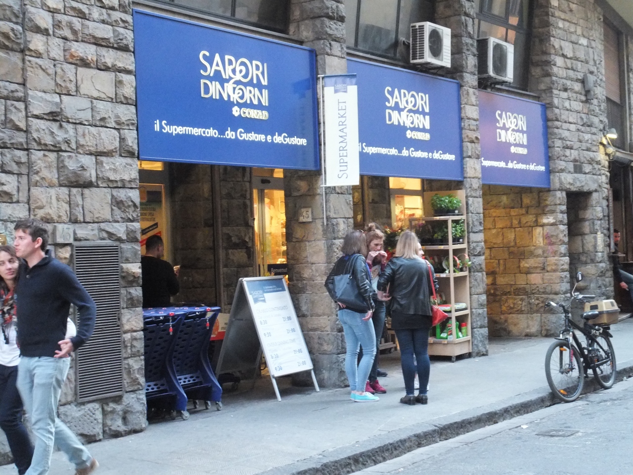 ヴェッキオ橋のすぐそばにあるスーパー。敷地面積は狭いですが、品揃えは充実しています。前回の旅行のときにも購入したのですが、フィアスコのキャンティが1.5リットルで5ユーロくらいととても安く、おいしかったです。お土産物屋よりも安いので、キャンティをお探しの際は、是非立ち寄ってみてください。