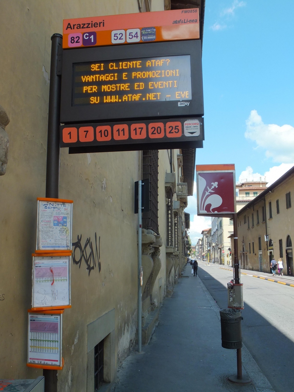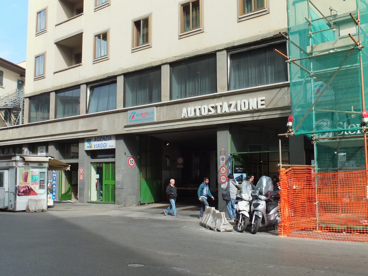 フィレンツェからthe Mallに行く場合、電車だと不便ですので、バスを利用することになると思います。バスはSMN駅そばのバスターミナルから出ています。チケット売り場でチケットを買って乗ることになります。料金は往復13ユーロでした。片道45分くらいだったと思います。バスの中では寝られるので、楽ですよ!