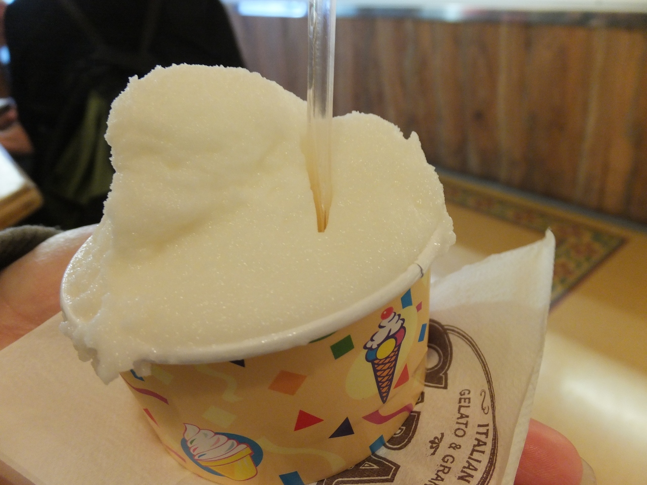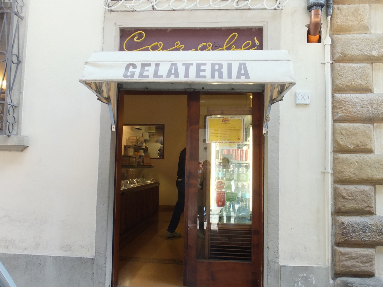 アカデミア美術館に向かう途中にあるジェラート屋さん。小さな店舗ですが、ジェラートの種類は豊富で、ちょっとしたベンチもありますので店内で食べることもできます。この時はレモンを頼みました。さわやかな甘さと酸味で、街歩きの疲れも取れる気がします。