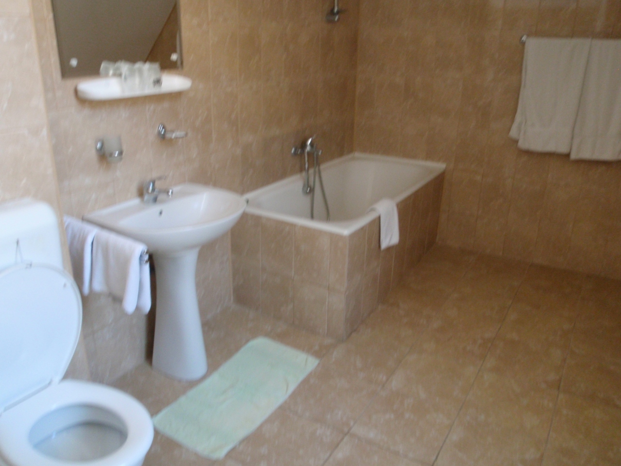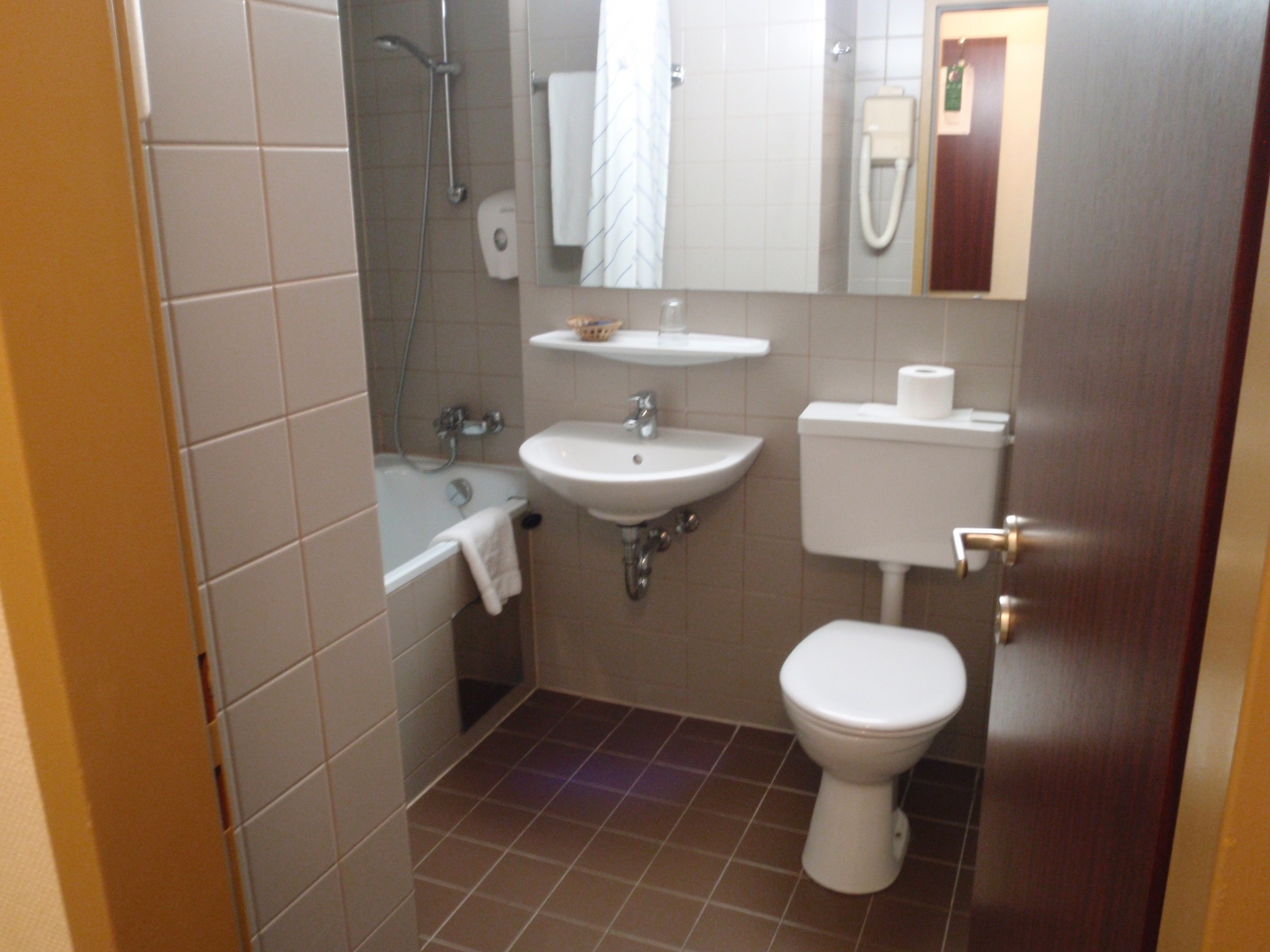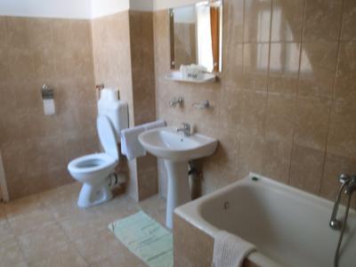 バスルームは広くてバスタブもあったがシャワーカーテンや仕切りが無く、気を付けないとトイレや洗面所まで濡れる。